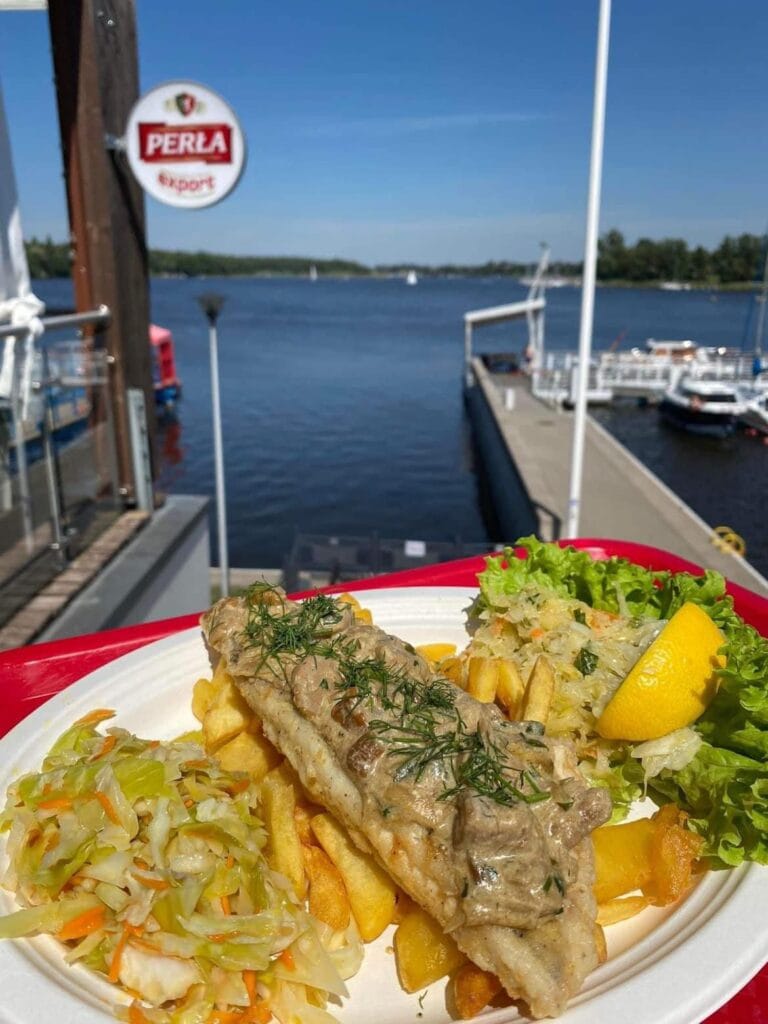 Zapraszamy codziennie na smażonego sandacza, złociste frytki i inne przysmaki. To tutaj smak tradycji łączy się z widokiem na najdłuższe jezioro w Polsce! 🐟🌊